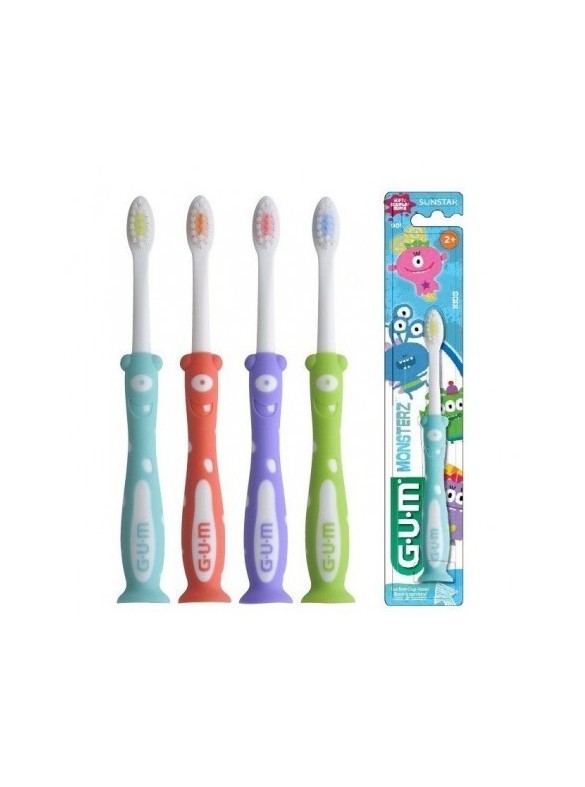 GUM BROSSE A DENTS MONSTER KIDS 901 3 A 6 ANS 901Tête de brosse et poignée de petite taille conçues pour les jeunes enfants (2 ans et plus) Poils doux en douceur et efficacement enlever la plaque Centre, poils de couleur aident à souligner une plus petite quantité de dentifrice pour les enfants La conception des poils Dome Trim® est cliniquement prouvée pour nettoyer en dessous de la ligne des gencives * La base de la ventouse maintient la brosse à dents en position verticale – gardant les poils secs et propres Poignée en TPE avec un protège-pouce pour une prise en main confortable